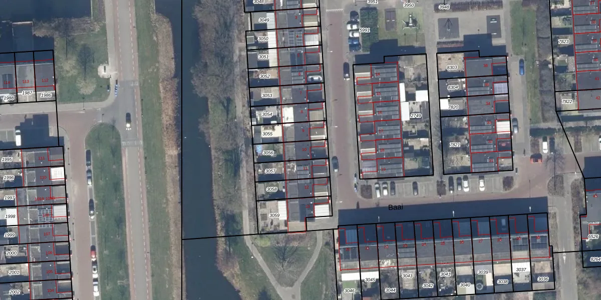 Gebruik de zoekbalk of klik op een perceel voor informatie over de adressen binnen dit perceel.