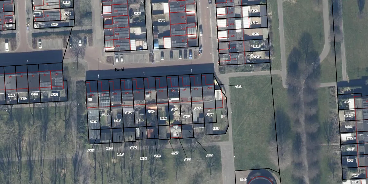 Het perceel waarop Baai 114 staat heeft een oppervlakte van 169 m². Dit is een middelgroot perceel. De perceeloppervlakte wordt geregistreerd door het Kadaster. Gedetailleerde informatie over de maten van dit perceel kunt u vinden in het rapport Kadastrale kaart met maatvoering van Baai 114.