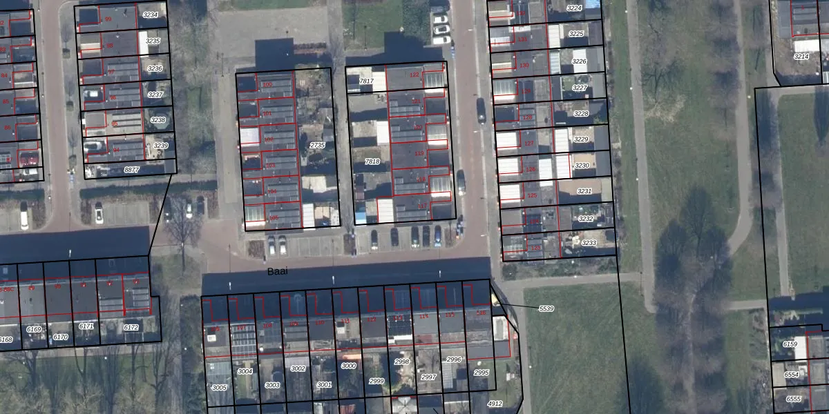 Het perceel waarop Baai 117 staat heeft een oppervlakte van 778 m². Dit is een groot perceel. De perceeloppervlakte wordt geregistreerd door het Kadaster. Gedetailleerde informatie over de maten van dit perceel kunt u vinden in het rapport Kadastrale kaart met maatvoering van Baai 117.