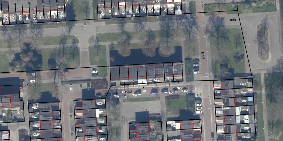 Gebruik de zoekbalk of klik op een perceel voor informatie over de adressen binnen dit perceel.