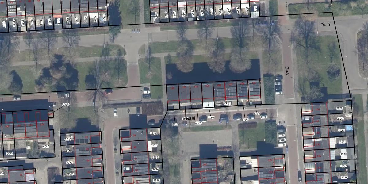 Het perceel waarop Baai 141 staat heeft een oppervlakte van 87 m². Dit is een klein perceel. De perceeloppervlakte wordt geregistreerd door het Kadaster. Gedetailleerde informatie over de maten van dit perceel kunt u vinden in het rapport Kadastrale kaart met maatvoering van Baai 141.