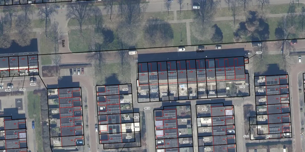 Het perceel waarop Baai 152 staat heeft een oppervlakte van 165 m². Dit is een middelgroot perceel. De perceeloppervlakte wordt geregistreerd door het Kadaster. Gedetailleerde informatie over de maten van dit perceel kunt u vinden in het rapport Kadastrale kaart met maatvoering van Baai 152.