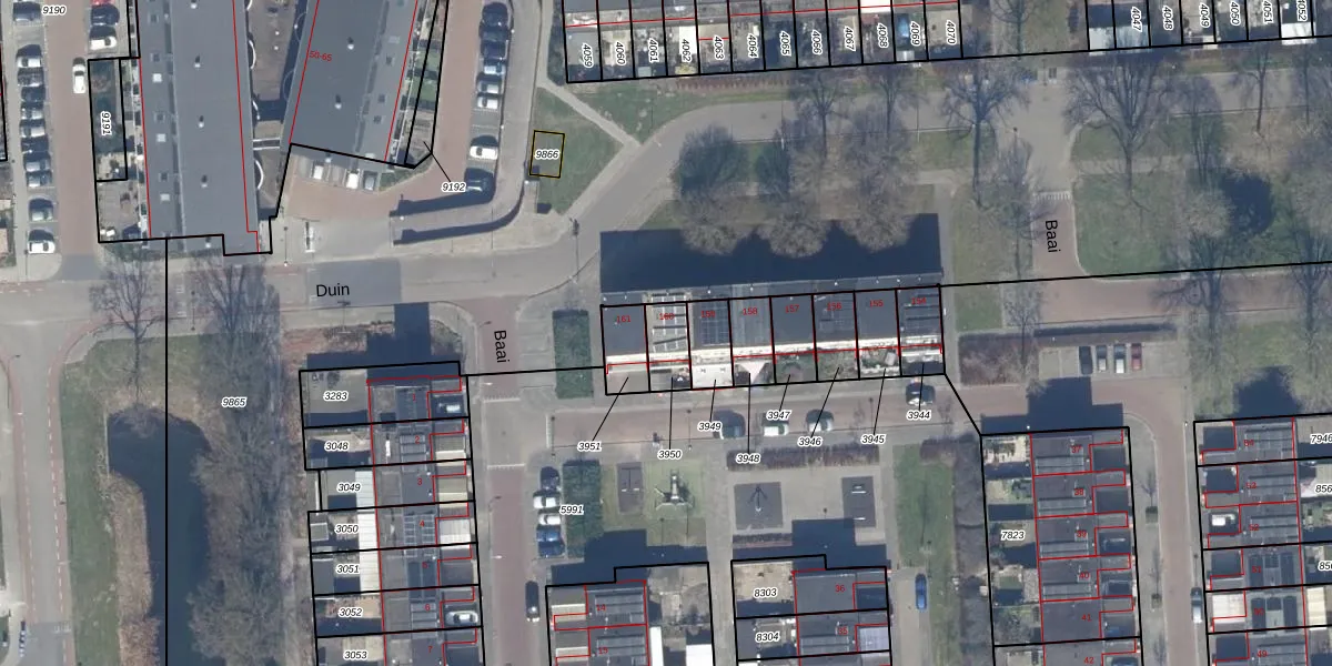 Het perceel waarop Baai 160 staat heeft een oppervlakte van 83 m². Dit is een klein perceel. De perceeloppervlakte wordt geregistreerd door het Kadaster. Gedetailleerde informatie over de maten van dit perceel kunt u vinden in het rapport Kadastrale kaart met maatvoering van Baai 160.