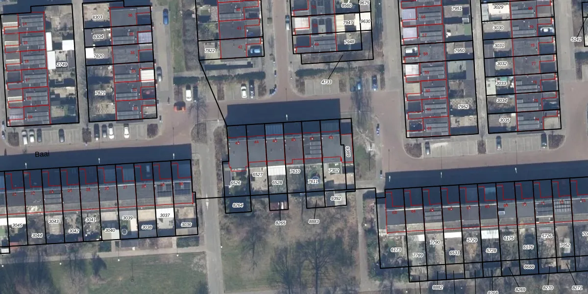 Het perceel waarop Baai 46 staat heeft een oppervlakte van 152 m². Dit is een middelgroot perceel. De perceeloppervlakte wordt geregistreerd door het Kadaster. Gedetailleerde informatie over de maten van dit perceel kunt u vinden in het rapport Kadastrale kaart met maatvoering van Baai 46.