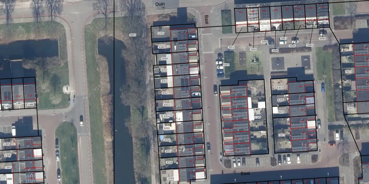 Gebruik de zoekbalk of klik op een perceel voor informatie over de adressen binnen dit perceel.