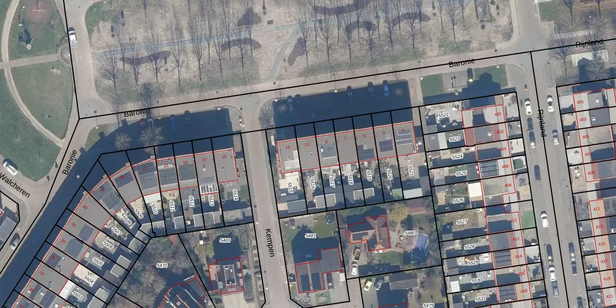 Gebruik de zoekbalk of klik op een perceel voor informatie over de adressen binnen dit perceel.