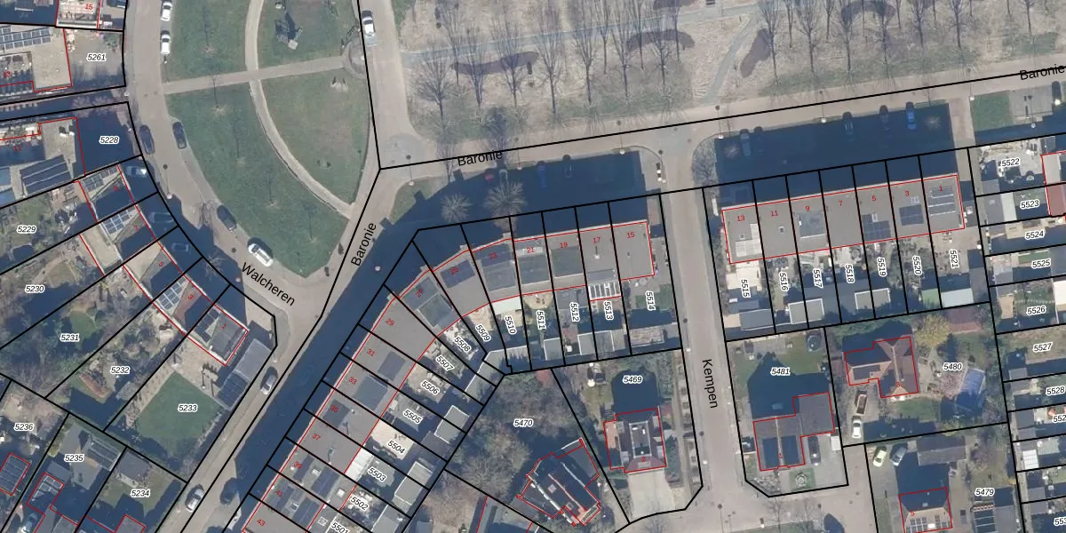 Het perceel waarop Baronie 21 staat heeft een oppervlakte van 184 m². Dit is een middelgroot perceel. De perceeloppervlakte wordt geregistreerd door het Kadaster. Gedetailleerde informatie over de maten van dit perceel kunt u vinden in het rapport Kadastrale kaart met maatvoering van Baronie 21.