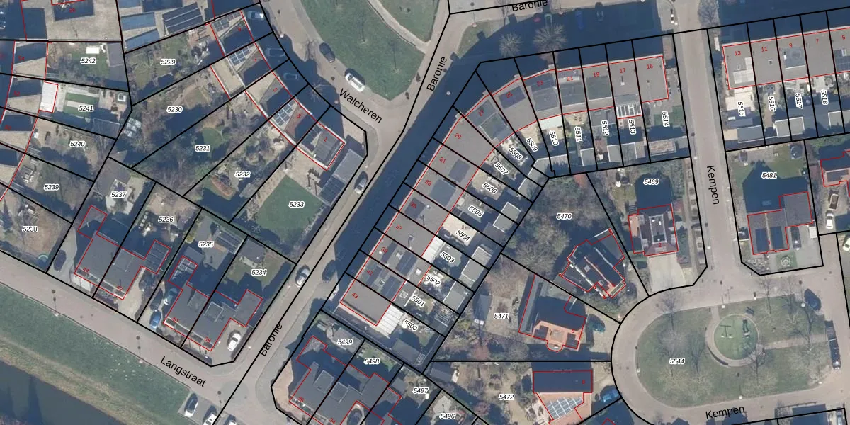 Het perceel waarop Baronie 35 staat heeft een oppervlakte van 178 m². Dit is een middelgroot perceel. De perceeloppervlakte wordt geregistreerd door het Kadaster. Gedetailleerde informatie over de maten van dit perceel kunt u vinden in het rapport Kadastrale kaart met maatvoering van Baronie 35.