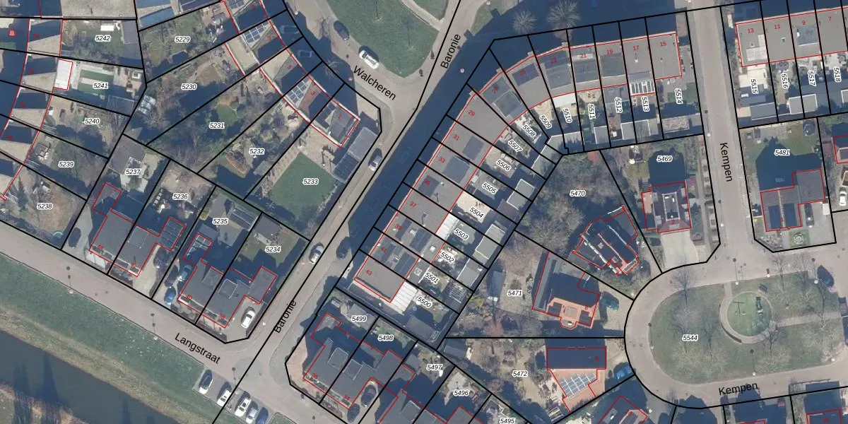 Het perceel waarop Baronie 37 staat heeft een oppervlakte van 178 m². Dit is een middelgroot perceel. De perceeloppervlakte wordt geregistreerd door het Kadaster. Gedetailleerde informatie over de maten van dit perceel kunt u vinden in het rapport Kadastrale kaart met maatvoering van Baronie 37.