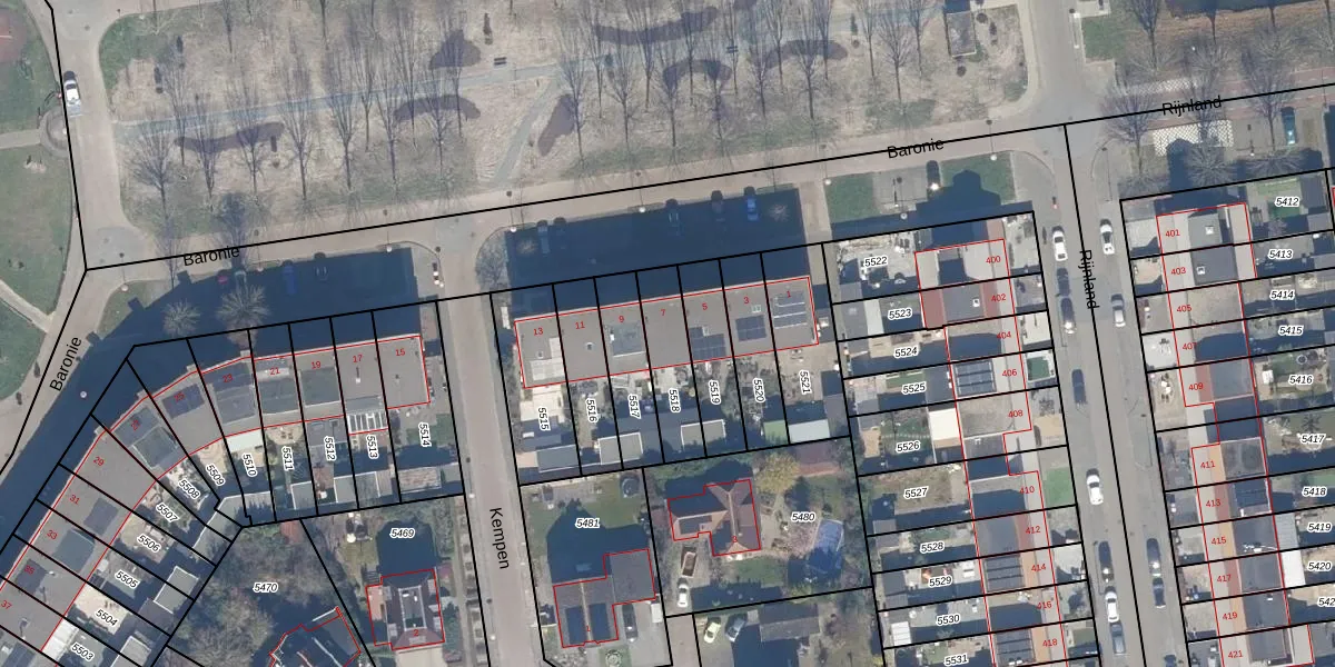 Het perceel waarop Baronie 7 staat heeft een oppervlakte van 184 m². Dit is een middelgroot perceel. De perceeloppervlakte wordt geregistreerd door het Kadaster. Gedetailleerde informatie over de maten van dit perceel kunt u vinden in het rapport Kadastrale kaart met maatvoering van Baronie 7.
