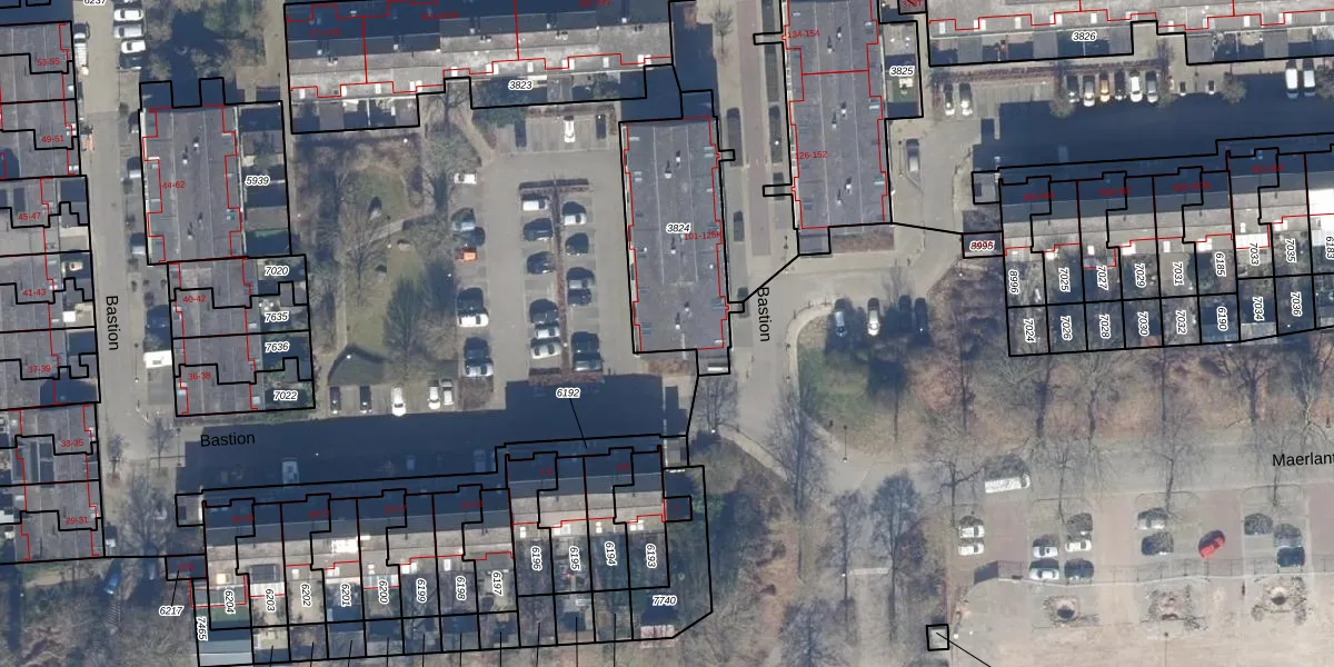 Het perceel waarop Bastion 113 staat heeft een oppervlakte van 552 m². Dit is een groot perceel. De perceeloppervlakte wordt geregistreerd door het Kadaster. Gedetailleerde informatie over de maten van dit perceel kunt u vinden in het rapport Kadastrale kaart met maatvoering van Bastion 113.