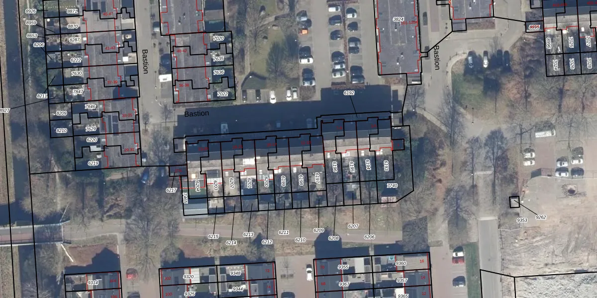 Het perceel waarop Bastion 13 staat heeft een oppervlakte van 107 m². Dit is een middelgroot perceel. De perceeloppervlakte wordt geregistreerd door het Kadaster. Gedetailleerde informatie over de maten van dit perceel kunt u vinden in het rapport Kadastrale kaart met maatvoering van Bastion 13.