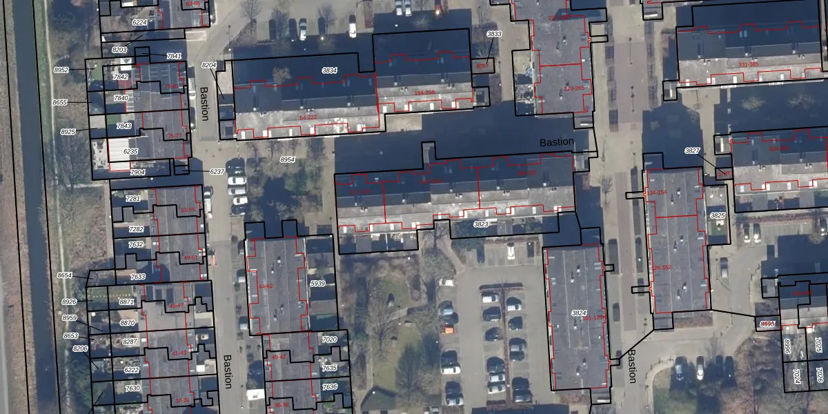 Het perceel waarop Bastion 167 staat heeft een oppervlakte van 1101 m². Dit is een zeer groot perceel. De perceeloppervlakte wordt geregistreerd door het Kadaster. Gedetailleerde informatie over de maten van dit perceel kunt u vinden in het rapport Kadastrale kaart met maatvoering van Bastion 167.