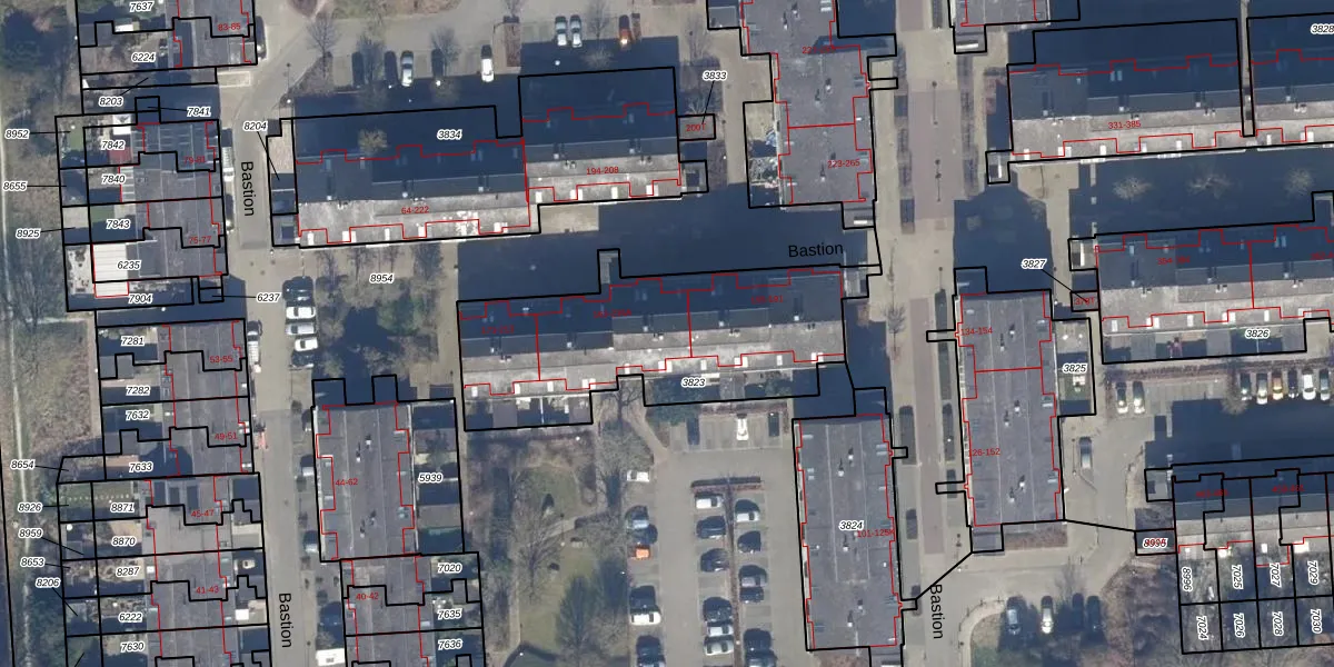 Het perceel waarop Bastion 193 staat heeft een oppervlakte van 1101 m². Dit is een zeer groot perceel. De perceeloppervlakte wordt geregistreerd door het Kadaster. Gedetailleerde informatie over de maten van dit perceel kunt u vinden in het rapport Kadastrale kaart met maatvoering van Bastion 193.