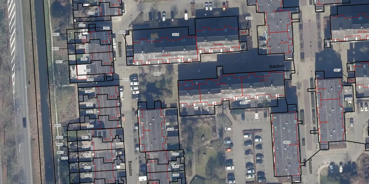 Het perceel waarop Bastion 213 staat heeft een oppervlakte van 1101 m². Dit is een zeer groot perceel. De perceeloppervlakte wordt geregistreerd door het Kadaster. Gedetailleerde informatie over de maten van dit perceel kunt u vinden in het rapport Kadastrale kaart met maatvoering van Bastion 213.