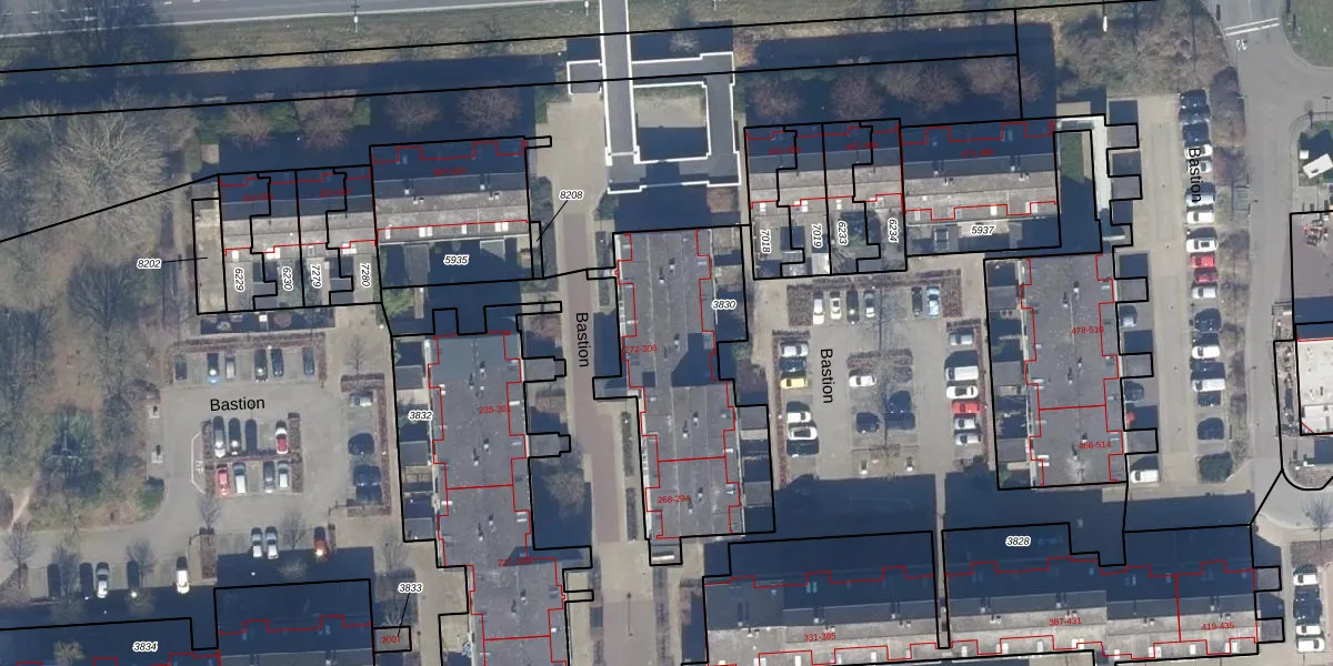 Het perceel waarop Bastion 278 staat heeft een oppervlakte van 888 m². Dit is een groot perceel. De perceeloppervlakte wordt geregistreerd door het Kadaster. Gedetailleerde informatie over de maten van dit perceel kunt u vinden in het rapport Kadastrale kaart met maatvoering van Bastion 278.