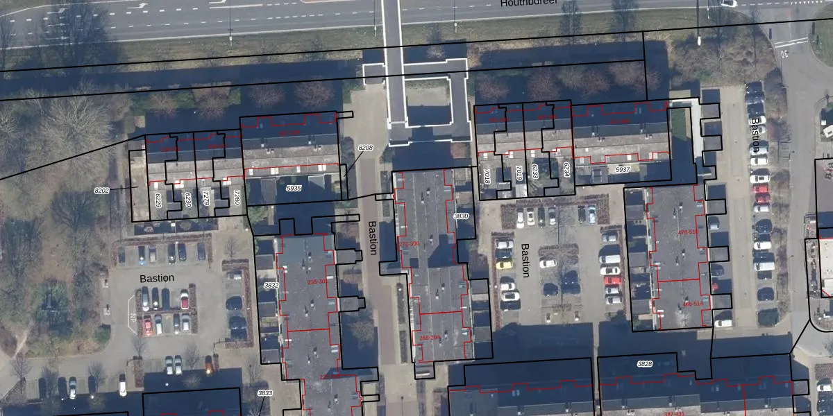 Het perceel waarop Bastion 280 staat heeft een oppervlakte van 888 m². Dit is een groot perceel. De perceeloppervlakte wordt geregistreerd door het Kadaster. Gedetailleerde informatie over de maten van dit perceel kunt u vinden in het rapport Kadastrale kaart met maatvoering van Bastion 280.