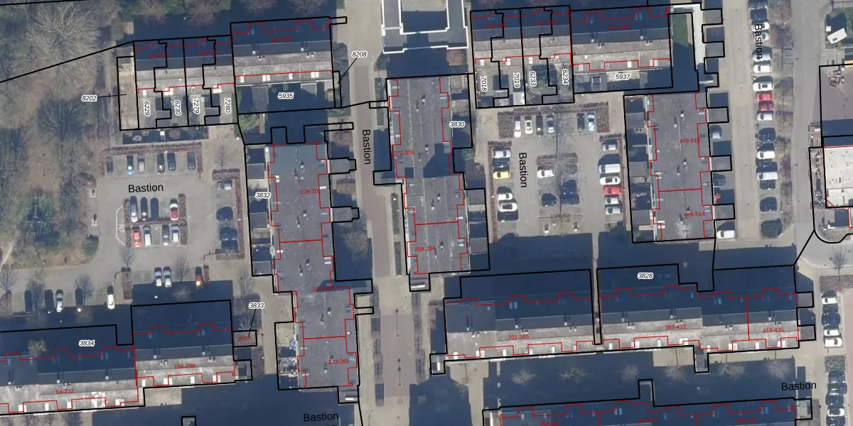 Het perceel waarop Bastion 288 staat heeft een oppervlakte van 888 m². Dit is een groot perceel. De perceeloppervlakte wordt geregistreerd door het Kadaster. Gedetailleerde informatie over de maten van dit perceel kunt u vinden in het rapport Kadastrale kaart met maatvoering van Bastion 288.