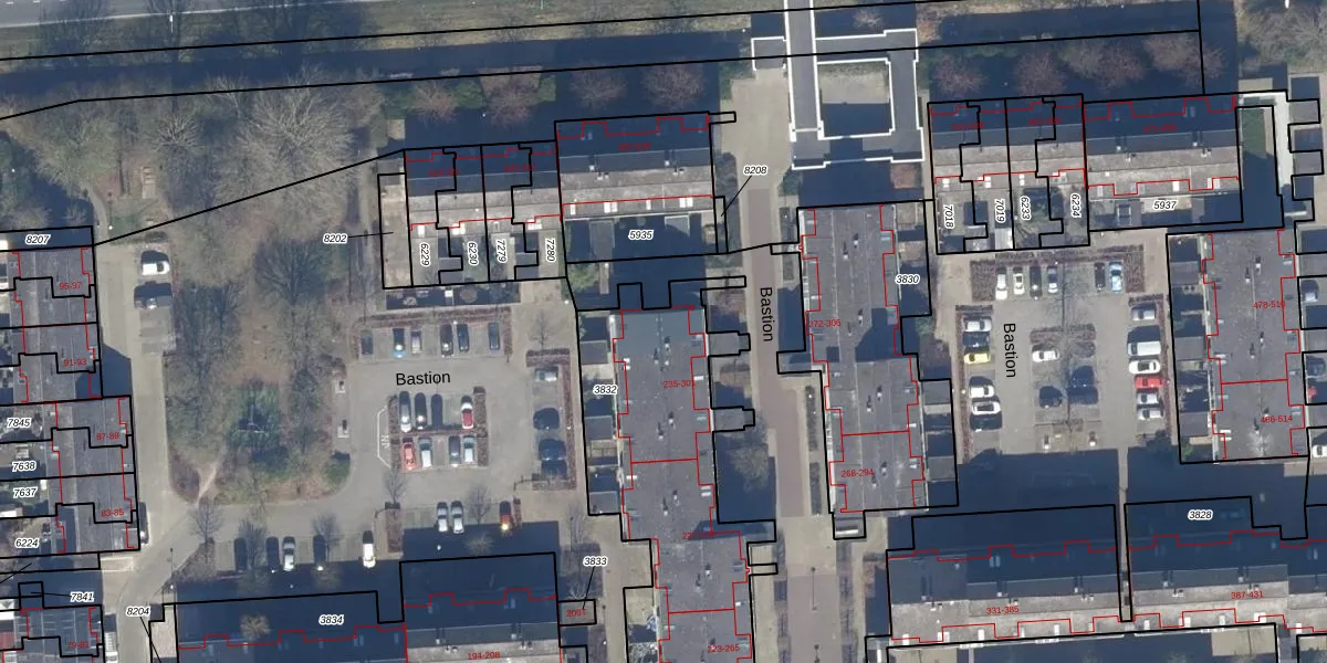 Het perceel waarop Bastion 301 staat heeft een oppervlakte van 1192 m². Dit is een zeer groot perceel. De perceeloppervlakte wordt geregistreerd door het Kadaster. Gedetailleerde informatie over de maten van dit perceel kunt u vinden in het rapport Kadastrale kaart met maatvoering van Bastion 301.