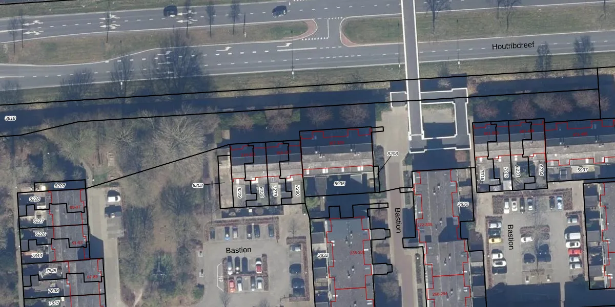 Het perceel waarop Bastion 329 staat heeft een oppervlakte van 504 m². Dit is een groot perceel. De perceeloppervlakte wordt geregistreerd door het Kadaster. Gedetailleerde informatie over de maten van dit perceel kunt u vinden in het rapport Kadastrale kaart met maatvoering van Bastion 329.