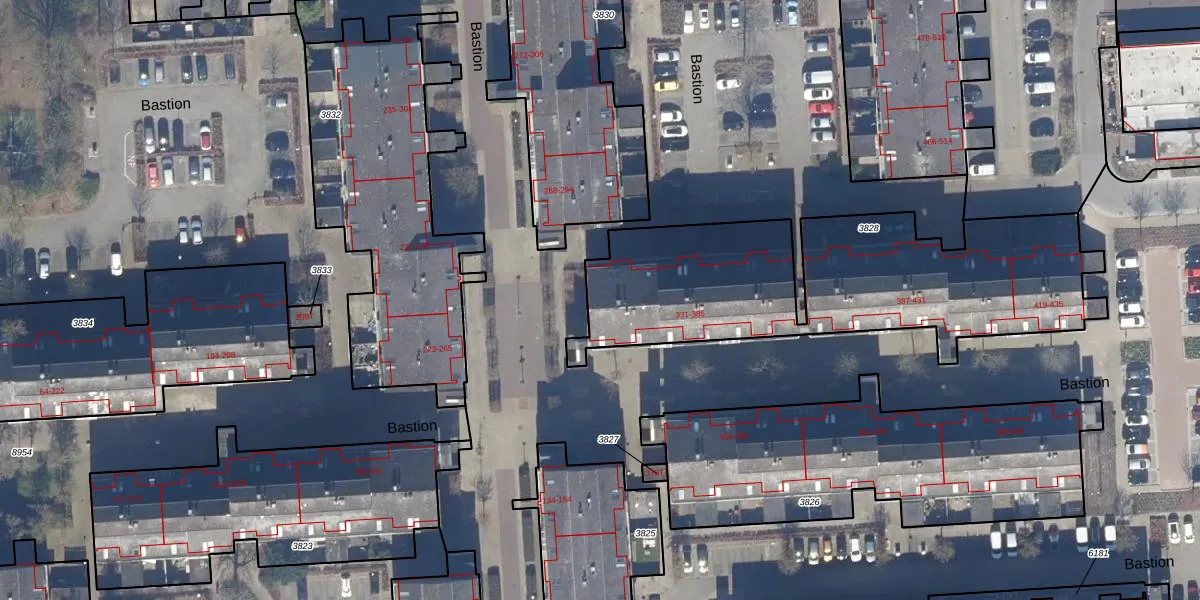 Het perceel waarop Bastion 343 staat heeft een oppervlakte van 1577 m². Dit is een zeer groot perceel. De perceeloppervlakte wordt geregistreerd door het Kadaster. Gedetailleerde informatie over de maten van dit perceel kunt u vinden in het rapport Kadastrale kaart met maatvoering van Bastion 343.