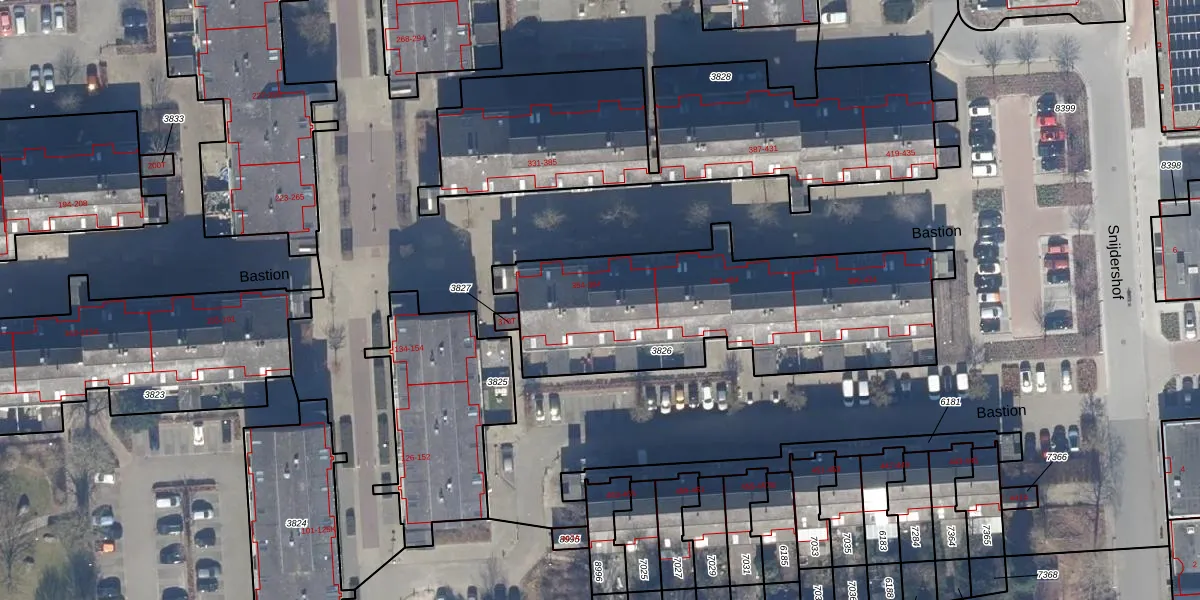 Het perceel waarop Bastion 358 staat heeft een oppervlakte van 1348 m². Dit is een zeer groot perceel. De perceeloppervlakte wordt geregistreerd door het Kadaster. Gedetailleerde informatie over de maten van dit perceel kunt u vinden in het rapport Kadastrale kaart met maatvoering van Bastion 358.