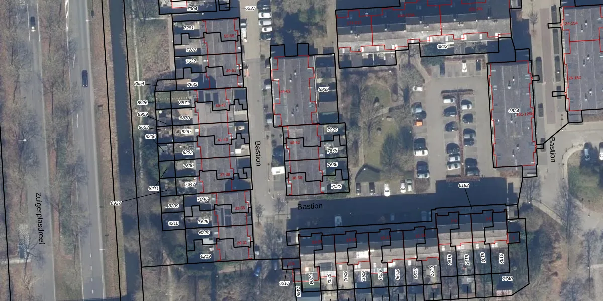 Gebruik de zoekbalk of klik op een perceel voor informatie over de adressen binnen dit perceel.