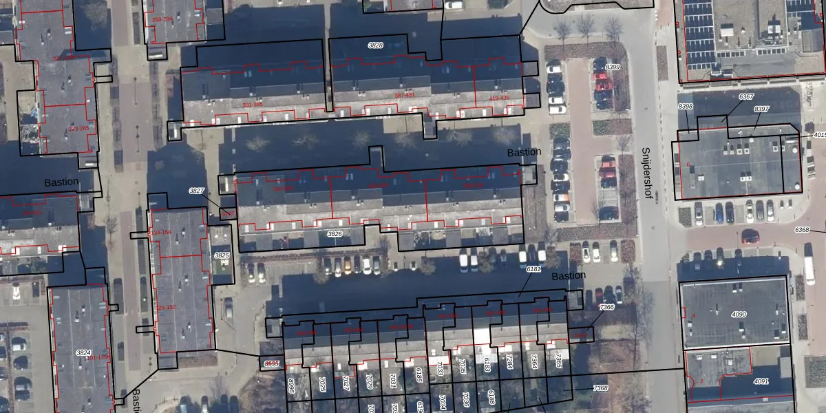 Het perceel waarop Bastion 404 staat heeft een oppervlakte van 1348 m². Dit is een zeer groot perceel. De perceeloppervlakte wordt geregistreerd door het Kadaster. Gedetailleerde informatie over de maten van dit perceel kunt u vinden in het rapport Kadastrale kaart met maatvoering van Bastion 404.