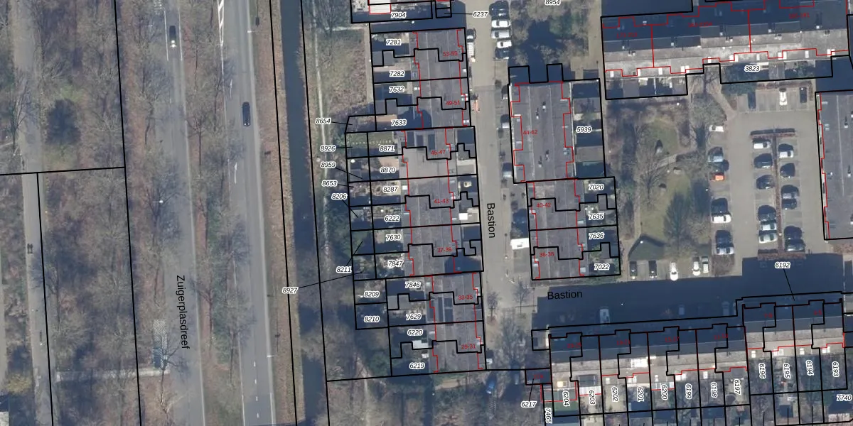 Gebruik de zoekbalk of klik op een perceel voor informatie over de adressen binnen dit perceel.