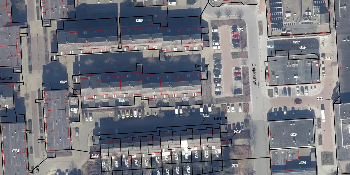 Het perceel waarop Bastion 430 staat heeft een oppervlakte van 1348 m². Dit is een zeer groot perceel. De perceeloppervlakte wordt geregistreerd door het Kadaster. Gedetailleerde informatie over de maten van dit perceel kunt u vinden in het rapport Kadastrale kaart met maatvoering van Bastion 430.