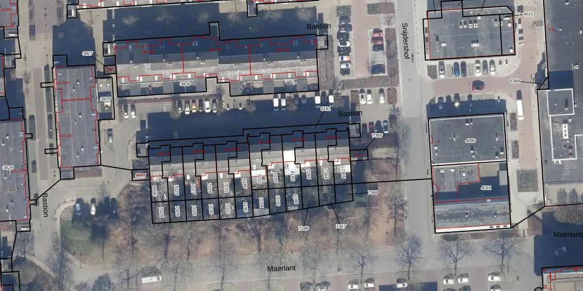 Het perceel waarop Bastion 449 staat heeft een oppervlakte van 106 m². Dit is een middelgroot perceel. De perceeloppervlakte wordt geregistreerd door het Kadaster. Gedetailleerde informatie over de maten van dit perceel kunt u vinden in het rapport Kadastrale kaart met maatvoering van Bastion 449.