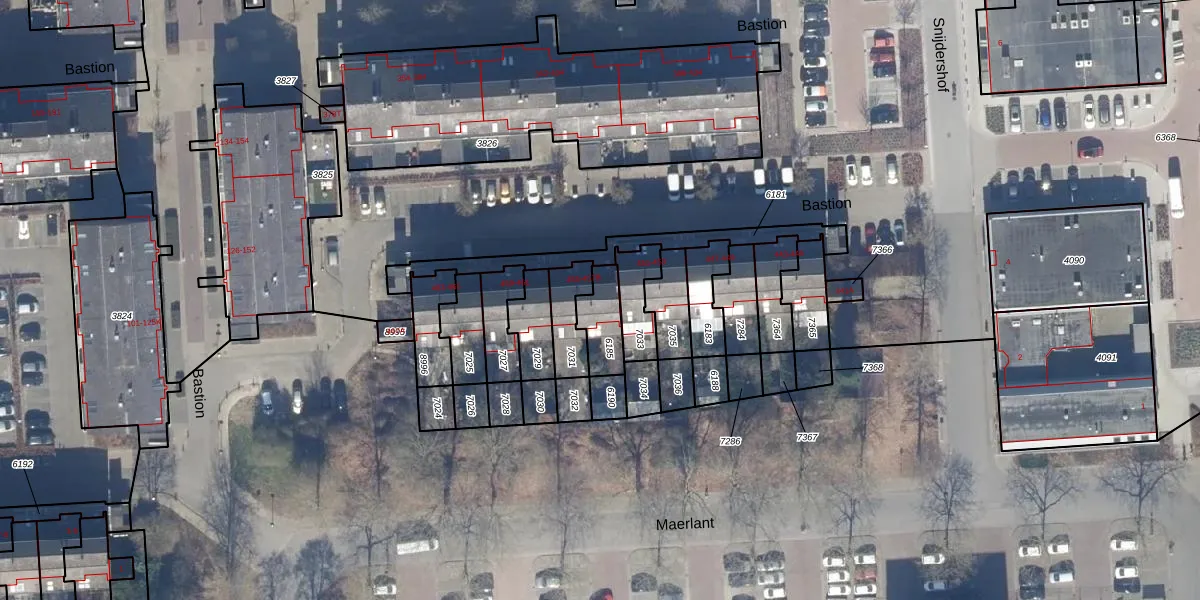 Gebruik de zoekbalk of klik op een perceel voor informatie over de adressen binnen dit perceel.