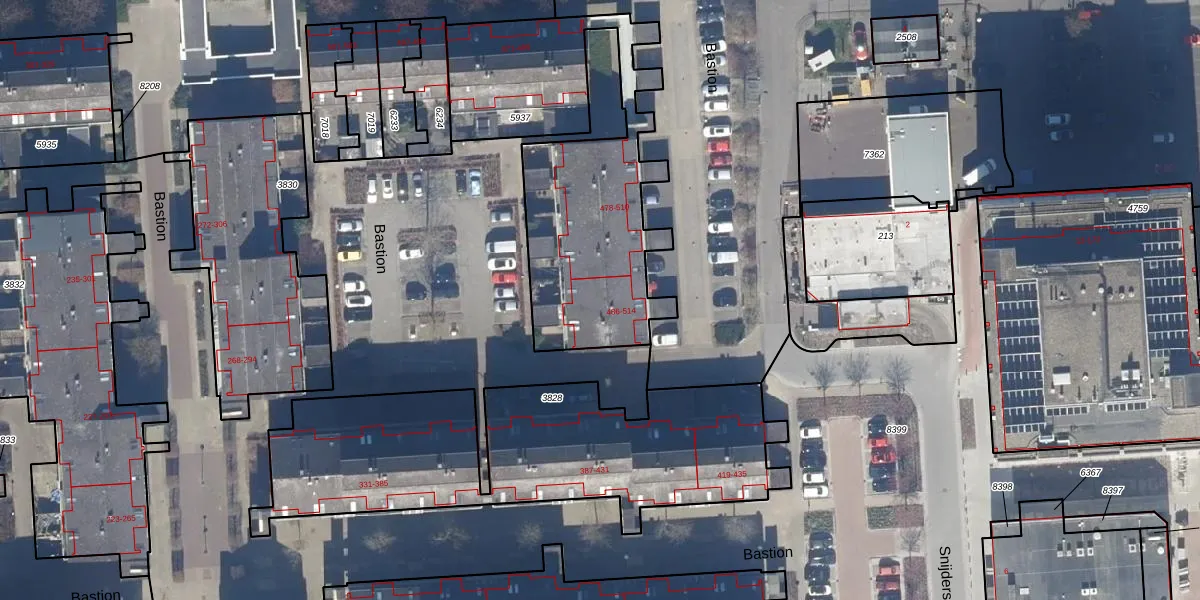 Het perceel waarop Bastion 486 staat heeft een oppervlakte van 1268 m². Dit is een zeer groot perceel. De perceeloppervlakte wordt geregistreerd door het Kadaster. Gedetailleerde informatie over de maten van dit perceel kunt u vinden in het rapport Kadastrale kaart met maatvoering van Bastion 486.
