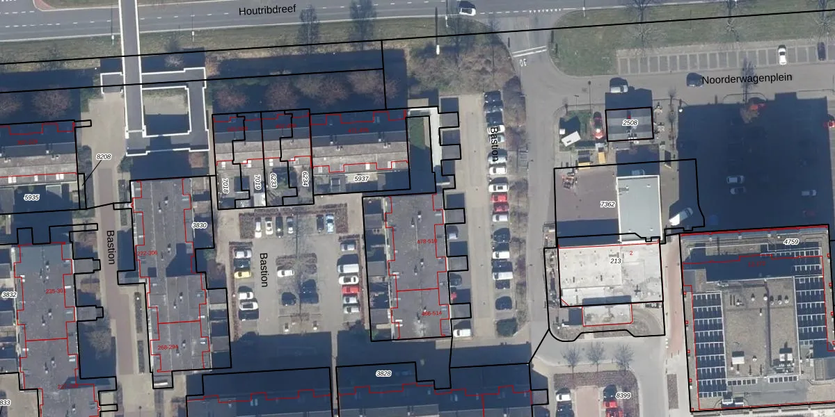 Het perceel waarop Bastion 504 staat heeft een oppervlakte van 1268 m². Dit is een zeer groot perceel. De perceeloppervlakte wordt geregistreerd door het Kadaster. Gedetailleerde informatie over de maten van dit perceel kunt u vinden in het rapport Kadastrale kaart met maatvoering van Bastion 504.