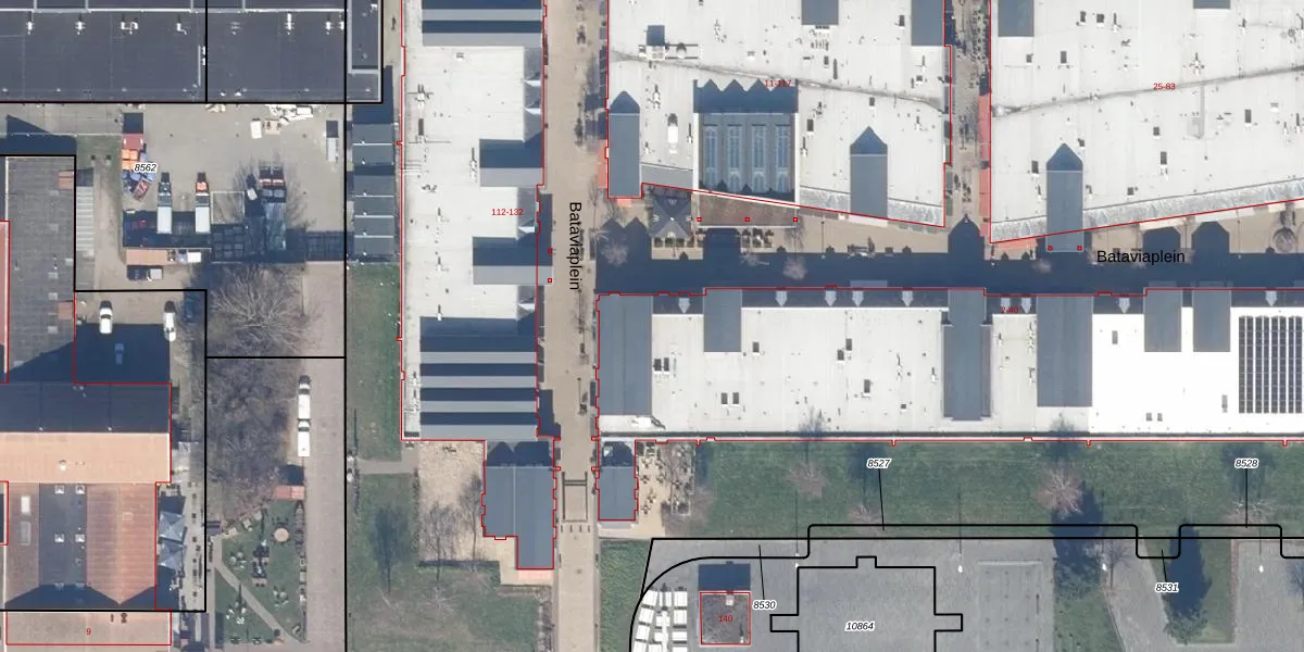 Het perceel waarop Bataviaplein 10 staat heeft een oppervlakte van 2,7 ha. Dit is een zeer groot perceel. De perceeloppervlakte wordt geregistreerd door het Kadaster. Gedetailleerde informatie over de maten van dit perceel kunt u vinden in het rapport Kadastrale kaart met maatvoering van Bataviaplein 10.