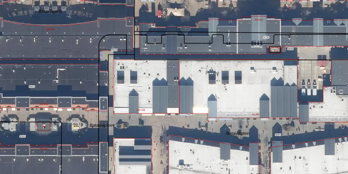 Het perceel waarop Bataviaplein 104 staat heeft een oppervlakte van 2,7 ha. Dit is een zeer groot perceel. De perceeloppervlakte wordt geregistreerd door het Kadaster. Gedetailleerde informatie over de maten van dit perceel kunt u vinden in het rapport Kadastrale kaart met maatvoering van Bataviaplein 104.
