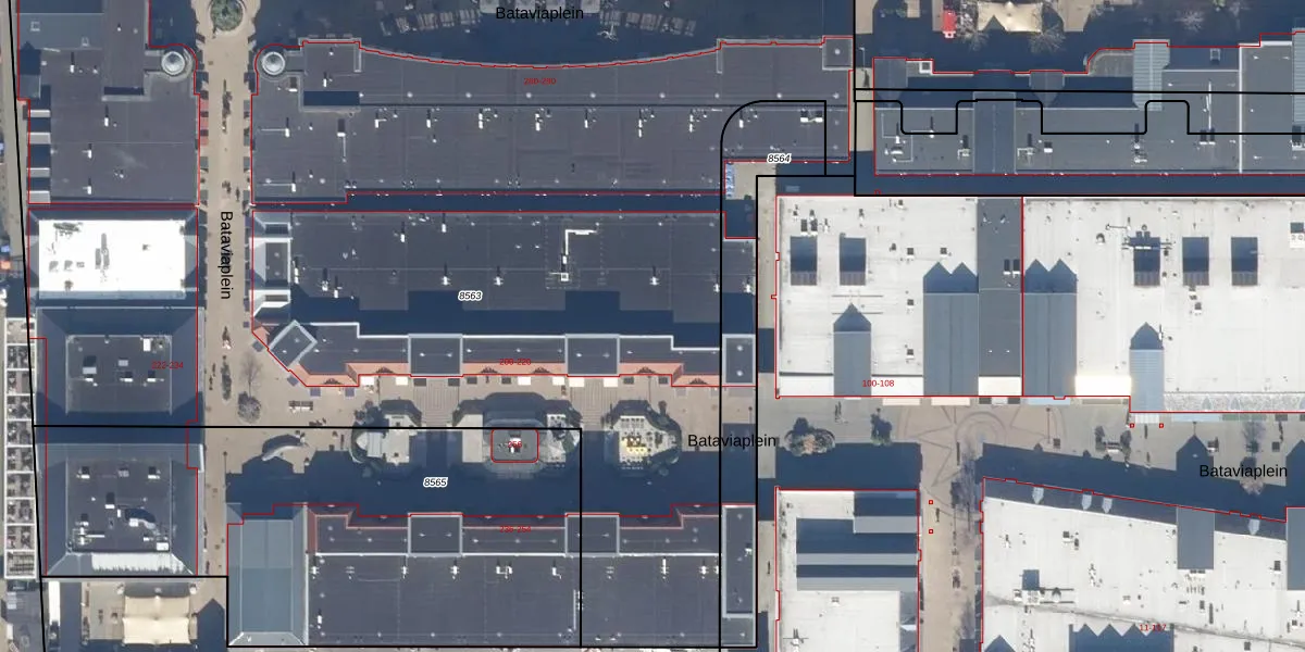 Het perceel waarop Bataviaplein 204 staat heeft een oppervlakte van 1,2 ha. Dit is een zeer groot perceel. De perceeloppervlakte wordt geregistreerd door het Kadaster. Gedetailleerde informatie over de maten van dit perceel kunt u vinden in het rapport Kadastrale kaart met maatvoering van Bataviaplein 204.