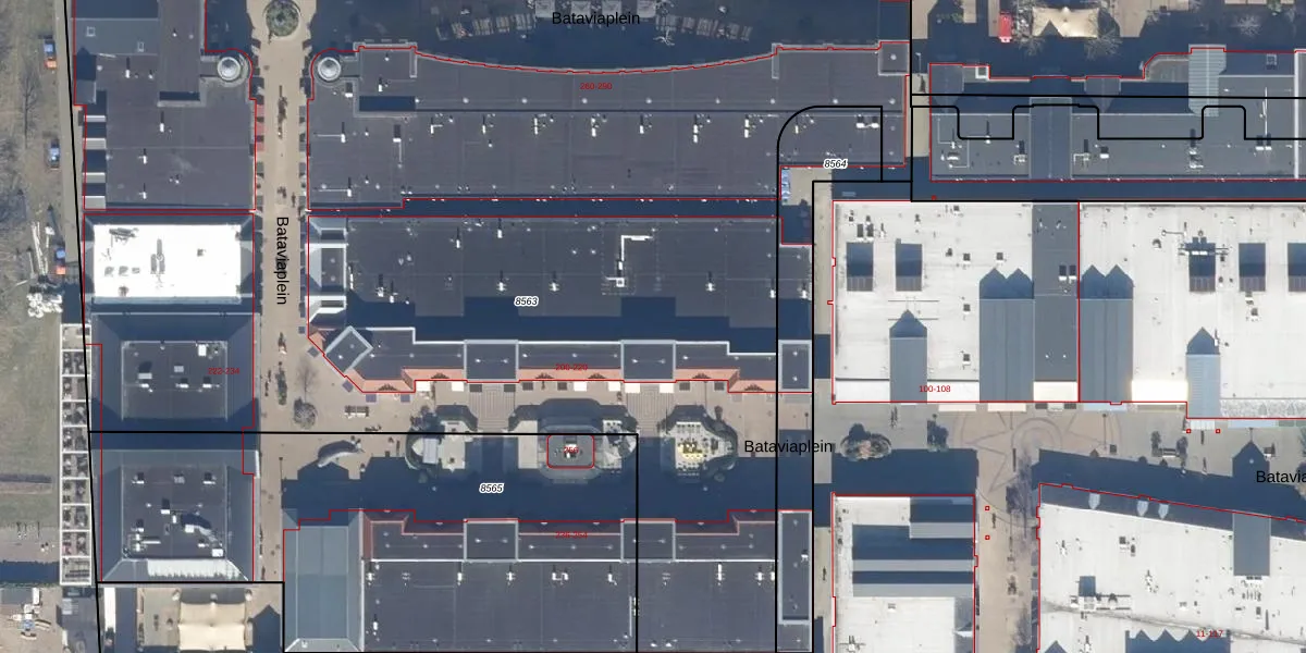Het perceel waarop Bataviaplein 206 staat heeft een oppervlakte van 1,2 ha. Dit is een zeer groot perceel. De perceeloppervlakte wordt geregistreerd door het Kadaster. Gedetailleerde informatie over de maten van dit perceel kunt u vinden in het rapport Kadastrale kaart met maatvoering van Bataviaplein 206.
