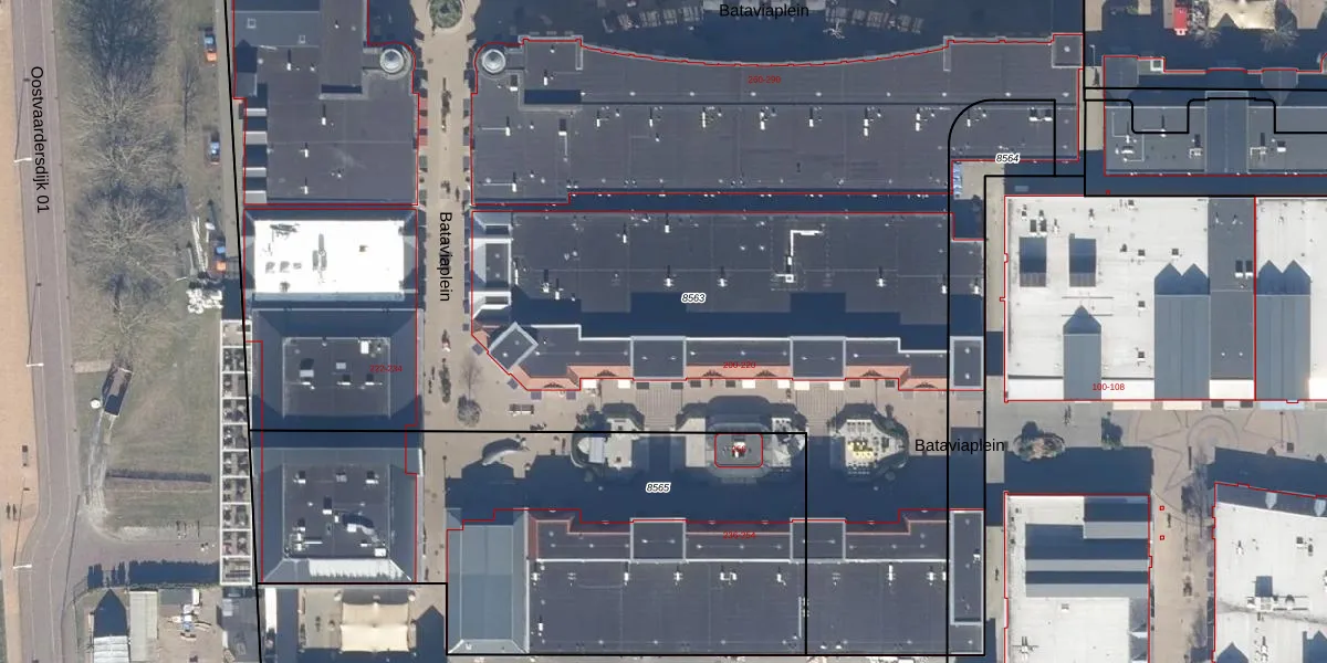 Het perceel waarop Bataviaplein 212 staat heeft een oppervlakte van 1,2 ha. Dit is een zeer groot perceel. De perceeloppervlakte wordt geregistreerd door het Kadaster. Gedetailleerde informatie over de maten van dit perceel kunt u vinden in het rapport Kadastrale kaart met maatvoering van Bataviaplein 212.