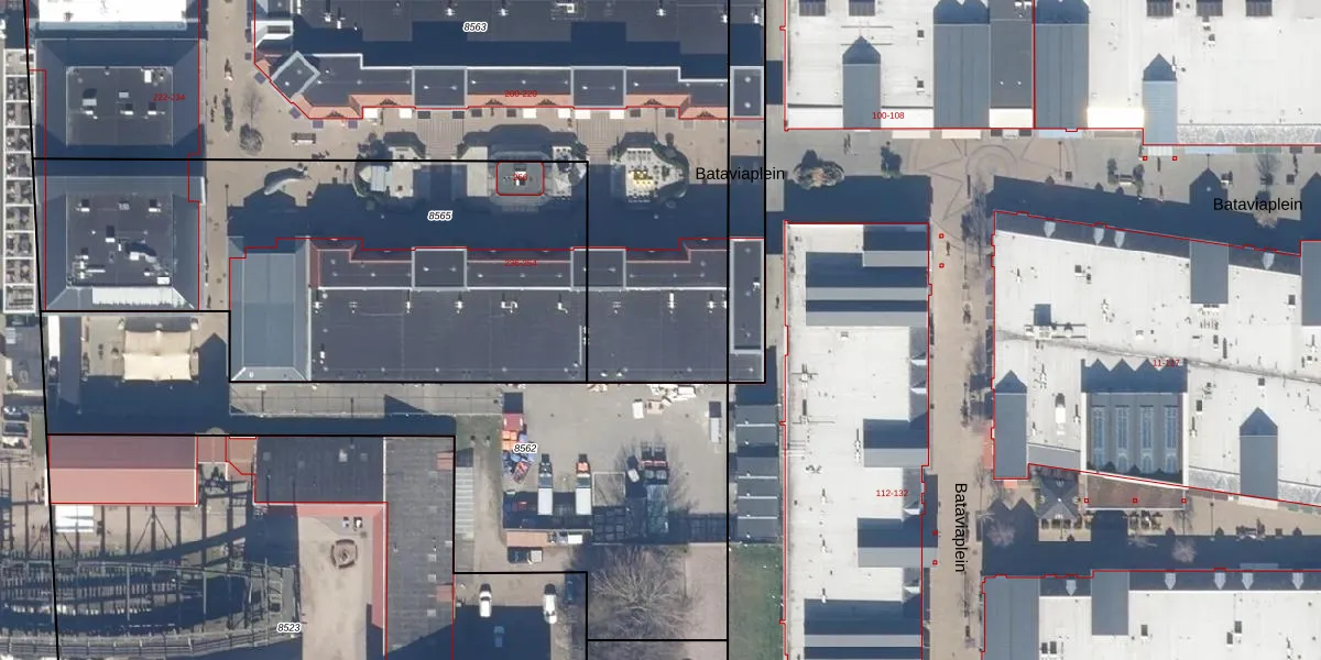 Het perceel waarop Bataviaplein 250 staat heeft een oppervlakte van 1,2 ha. Dit is een zeer groot perceel. De perceeloppervlakte wordt geregistreerd door het Kadaster. Gedetailleerde informatie over de maten van dit perceel kunt u vinden in het rapport Kadastrale kaart met maatvoering van Bataviaplein 250.