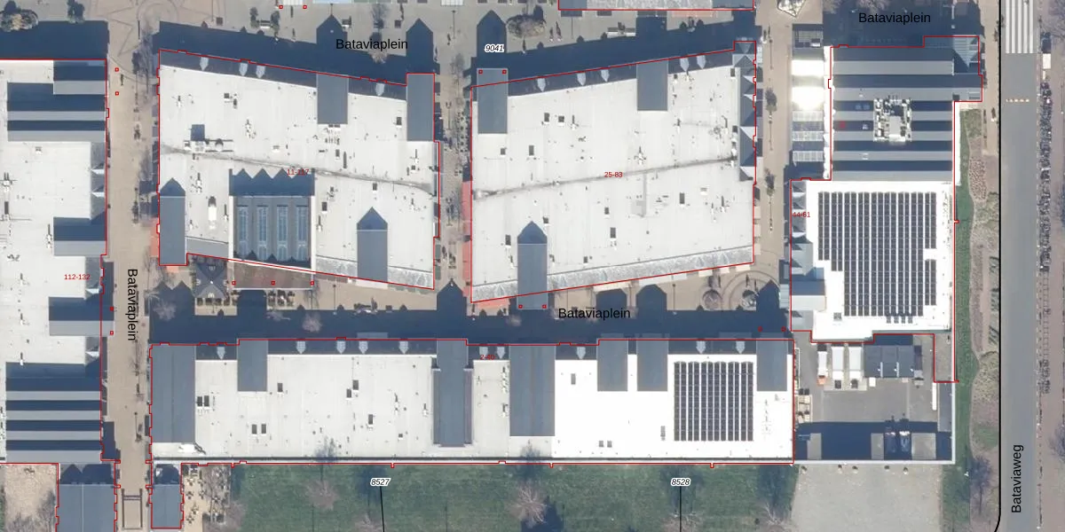 Het perceel waarop Bataviaplein 27 staat heeft een oppervlakte van 2,7 ha. Dit is een zeer groot perceel. De perceeloppervlakte wordt geregistreerd door het Kadaster. Gedetailleerde informatie over de maten van dit perceel kunt u vinden in het rapport Kadastrale kaart met maatvoering van Bataviaplein 27.