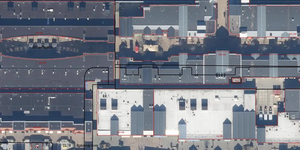 Het perceel waarop Bataviaplein 304 staat heeft een oppervlakte van 2134 m². Dit is een zeer groot perceel. De perceeloppervlakte wordt geregistreerd door het Kadaster. Gedetailleerde informatie over de maten van dit perceel kunt u vinden in het rapport Kadastrale kaart met maatvoering van Bataviaplein 304.