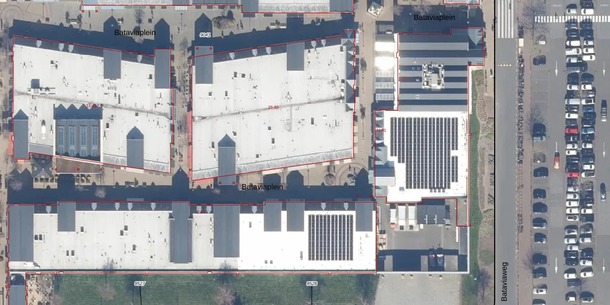 Het perceel waarop Bataviaplein 33 staat heeft een oppervlakte van 2,7 ha. Dit is een zeer groot perceel. De perceeloppervlakte wordt geregistreerd door het Kadaster. Gedetailleerde informatie over de maten van dit perceel kunt u vinden in het rapport Kadastrale kaart met maatvoering van Bataviaplein 33.