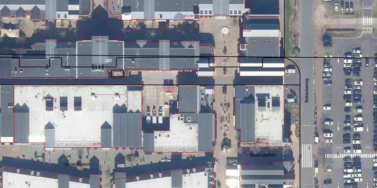 Het perceel waarop Bataviaplein 334-N staat heeft een oppervlakte van 2,7 ha. Dit is een zeer groot perceel. De perceeloppervlakte wordt geregistreerd door het Kadaster. Gedetailleerde informatie over de maten van dit perceel kunt u vinden in het rapport Kadastrale kaart met maatvoering van Bataviaplein 334-N.