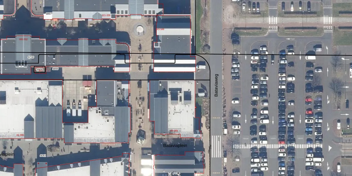 Het perceel waarop Bataviaplein 351 staat heeft een oppervlakte van 2,7 ha. Dit is een zeer groot perceel. De perceeloppervlakte wordt geregistreerd door het Kadaster. Gedetailleerde informatie over de maten van dit perceel kunt u vinden in het rapport Kadastrale kaart met maatvoering van Bataviaplein 351.