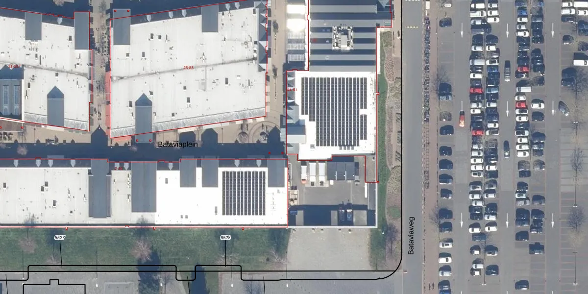 Het perceel waarop Bataviaplein 44 staat heeft een oppervlakte van 2,7 ha. Dit is een zeer groot perceel. De perceeloppervlakte wordt geregistreerd door het Kadaster. Gedetailleerde informatie over de maten van dit perceel kunt u vinden in het rapport Kadastrale kaart met maatvoering van Bataviaplein 44.