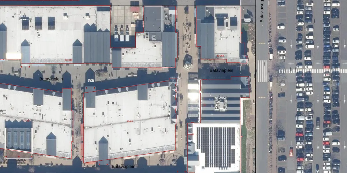 Het perceel waarop Bataviaplein 55-A staat heeft een oppervlakte van 2,7 ha. Dit is een zeer groot perceel. De perceeloppervlakte wordt geregistreerd door het Kadaster. Gedetailleerde informatie over de maten van dit perceel kunt u vinden in het rapport Kadastrale kaart met maatvoering van Bataviaplein 55-A.