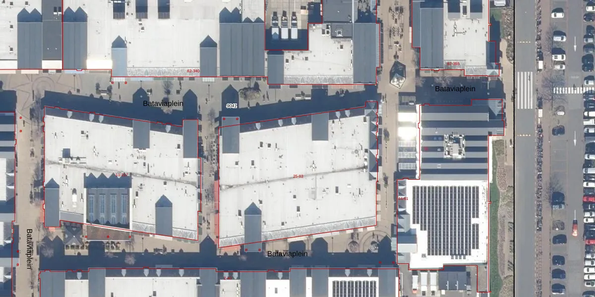 Het perceel waarop Bataviaplein 71 staat heeft een oppervlakte van 2,7 ha. Dit is een zeer groot perceel. De perceeloppervlakte wordt geregistreerd door het Kadaster. Gedetailleerde informatie over de maten van dit perceel kunt u vinden in het rapport Kadastrale kaart met maatvoering van Bataviaplein 71.