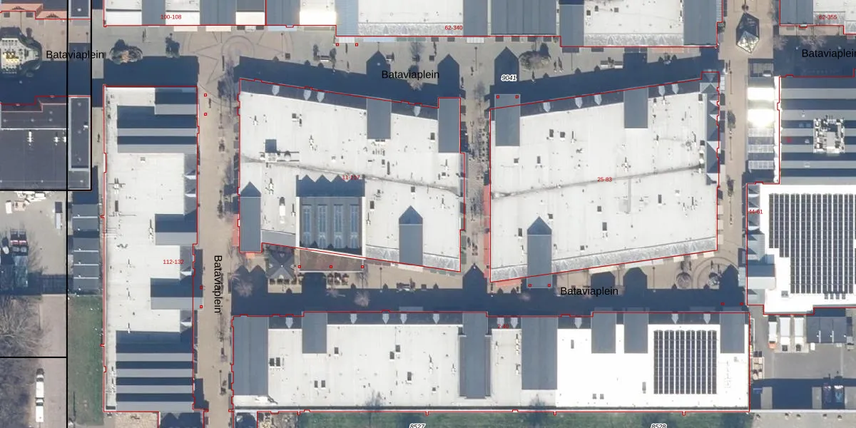 Het perceel waarop Bataviaplein 85 staat heeft een oppervlakte van 2,7 ha. Dit is een zeer groot perceel. De perceeloppervlakte wordt geregistreerd door het Kadaster. Gedetailleerde informatie over de maten van dit perceel kunt u vinden in het rapport Kadastrale kaart met maatvoering van Bataviaplein 85.
