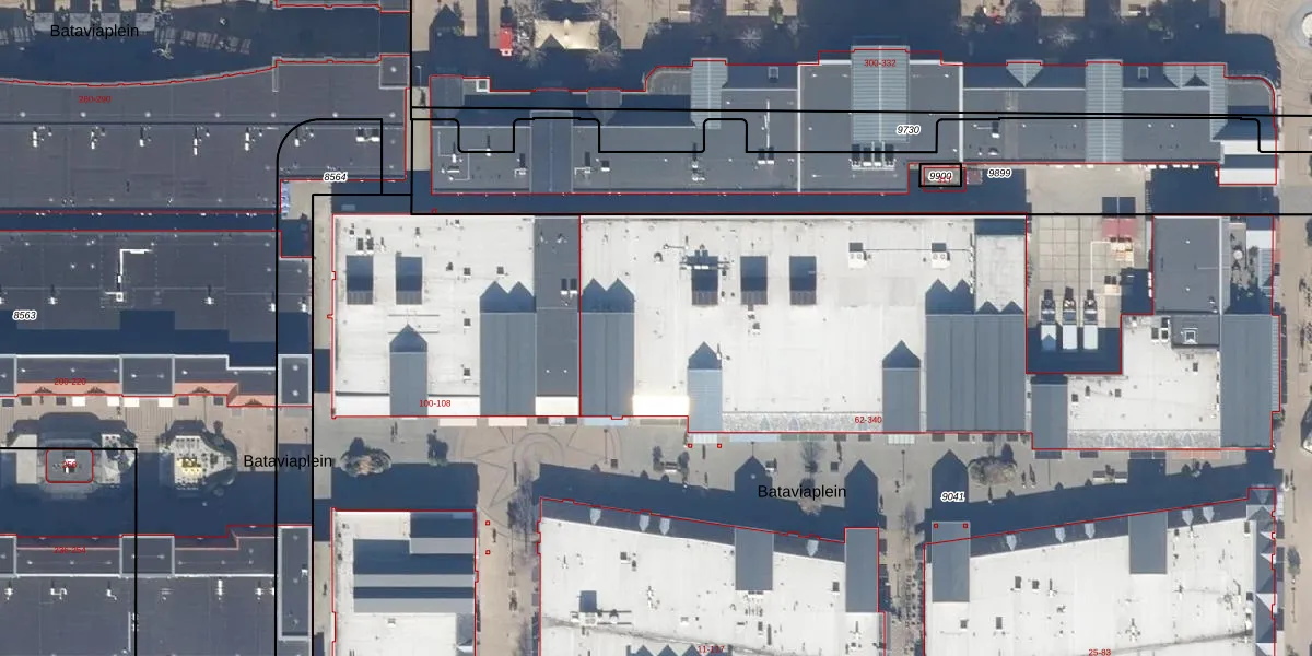 Het perceel waarop Bataviaplein 96 staat heeft een oppervlakte van 2,7 ha. Dit is een zeer groot perceel. De perceeloppervlakte wordt geregistreerd door het Kadaster. Gedetailleerde informatie over de maten van dit perceel kunt u vinden in het rapport Kadastrale kaart met maatvoering van Bataviaplein 96.